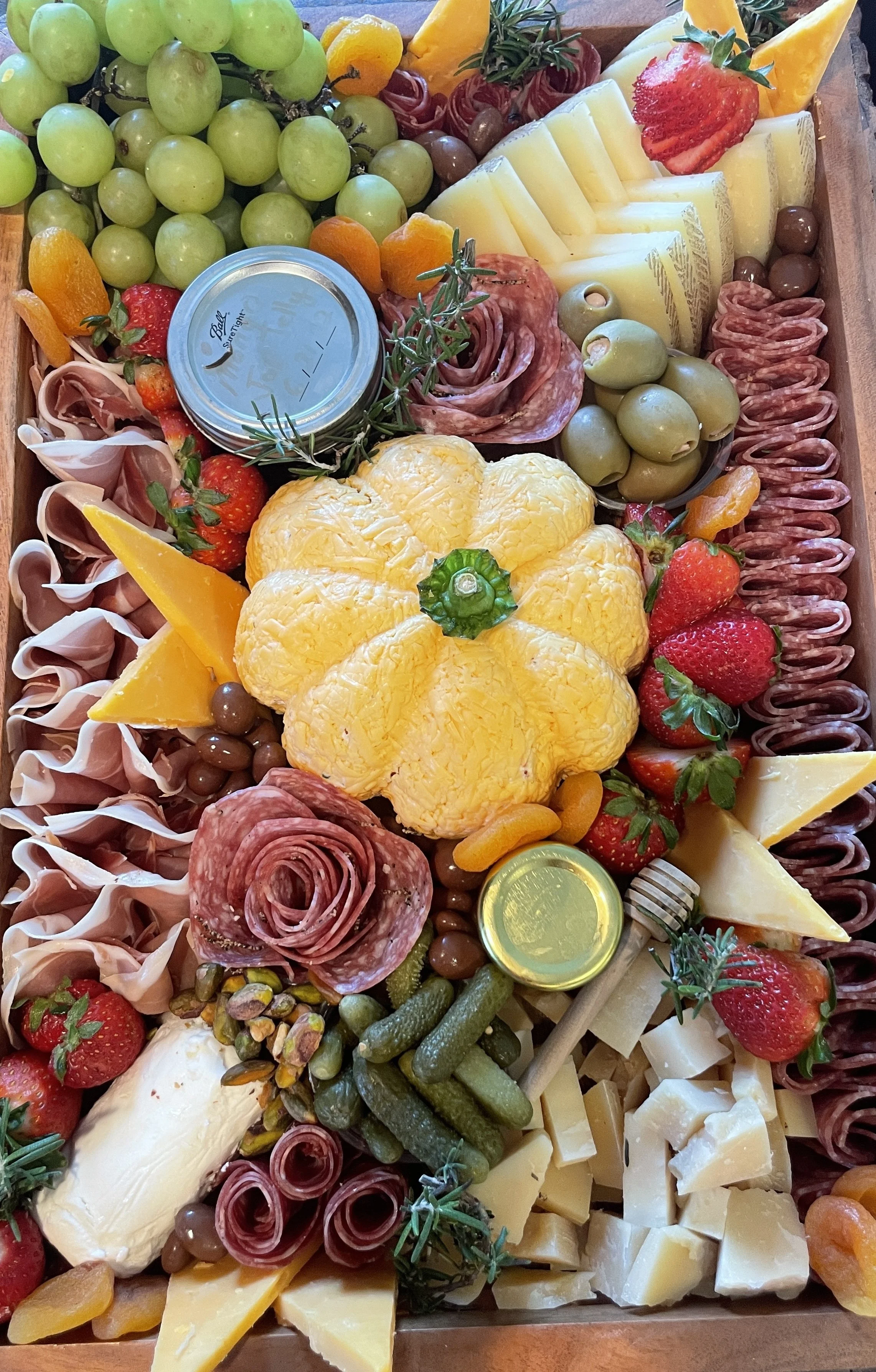 Small Board: Seasonal boards showcase the best of each season’s bounty, highlighting fresh produce, artisanal cheeses, cured meats, nuts, and complementary accompaniments.